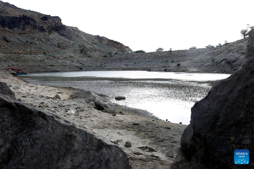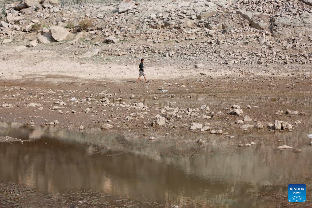 Photo taken on Aug. 25, 2023 shows a reservoir almost dried out on the outskirts of Sanaa, Yemen. The Yemeni people, already burdened by yearslong turmoil, now face another challenge posed by the unrelenting severe drought, a disaster brought on by climate change. (Photo by Mohammed Mohammed/Xinhua)