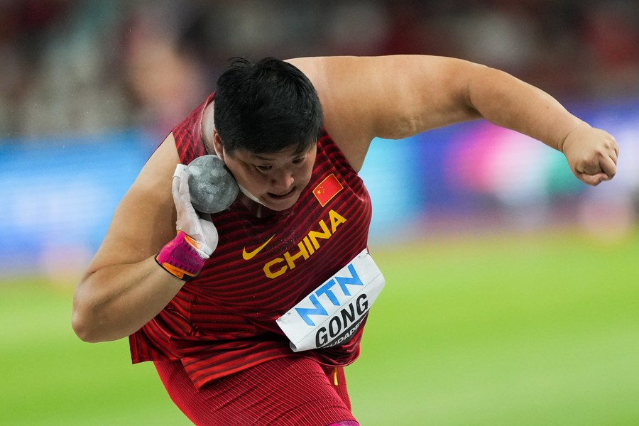 Gong Lijiao in action during the women's shot put final of the 2023 World Athletics Championships in Budapest, Hungary on Aug. 26, 2023. (Xinhua/Zheng Huansong)