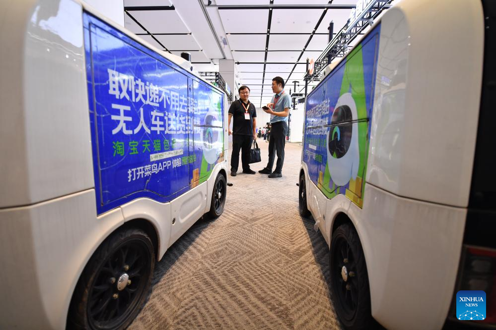 Visitors learn about unmanned delivery vehicles during the 2023 World Computing Conference in Changsha, central China's Hunan Province, Sept. 15, 2023.