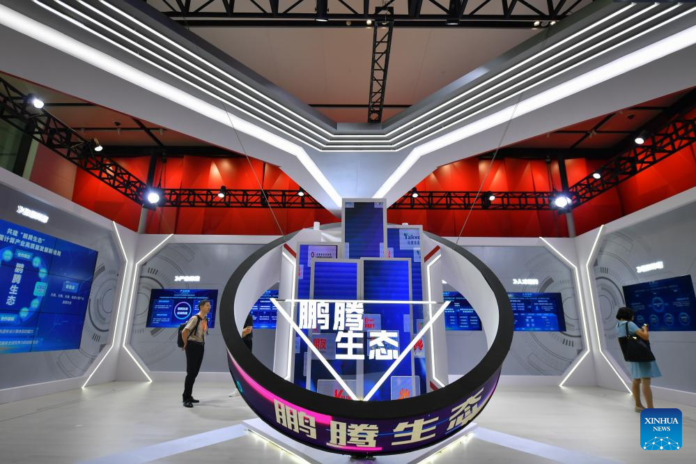 This photo taken on Sept. 15, 2023 shows the booth of Pengteng ecosystem during the 2023 World Computing Conference in Changsha, central China's Hunan Province.
