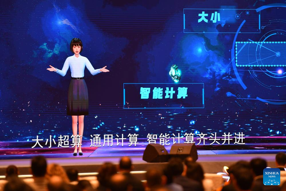 A virtual emcee introduces the 2023 World Computing Conference to audience at the opening ceremony of the 2023 World Computing Conference in Changsha, central China's Hunan Province, Sept. 15, 2023.