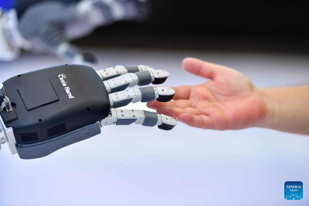 A visitor interacts with a service robot during the 2023 World Computing Conference in Changsha, central China's Hunan Province, Sept. 15, 2023.