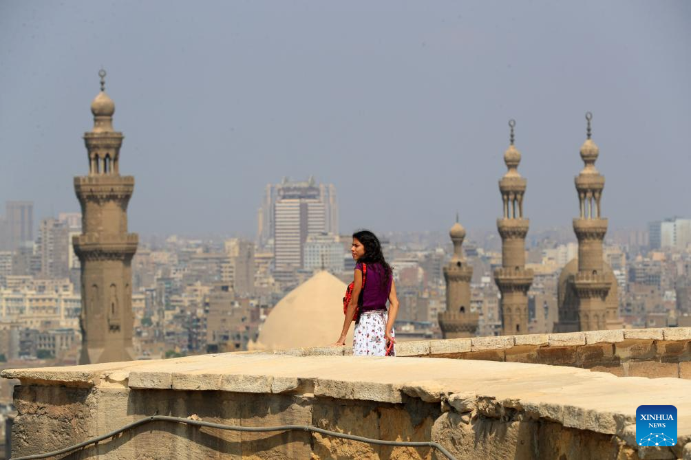 A tourist visits Saladin Citadel, a city landmark of Cairo, capital of Egypt, Sept. 16, 2023. (Xinhua/Sui Xiankai)