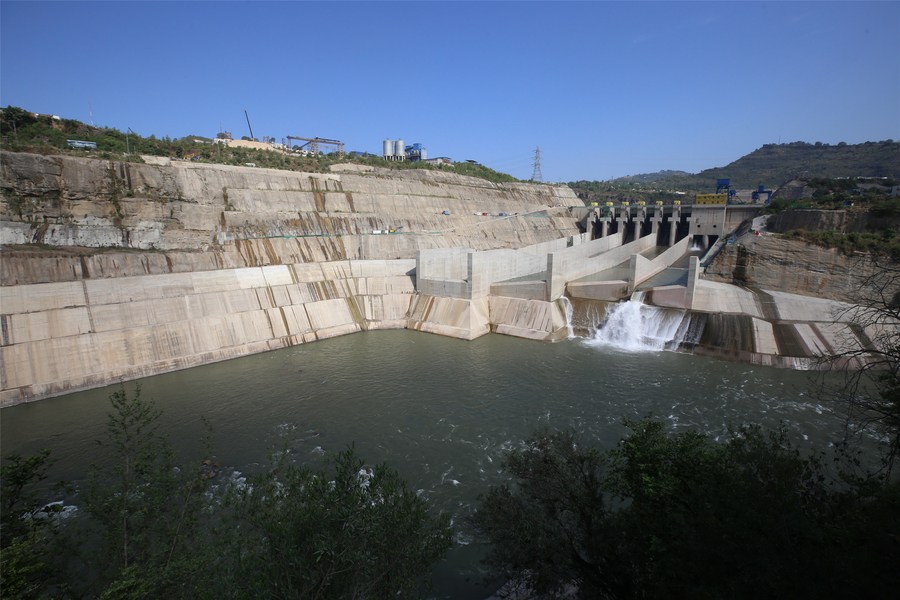 Aerial photo taken on May 24, 2022 shows the dam and spillway of the Karot Hydropower Project in Punjab province, eastern Pakistan. (CTG/Handout via Xinhua)