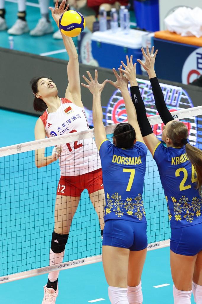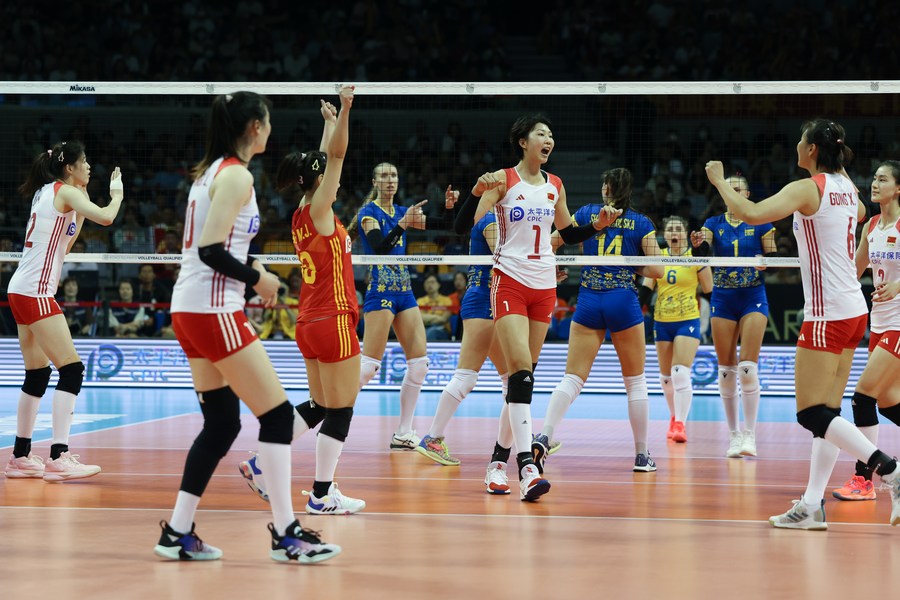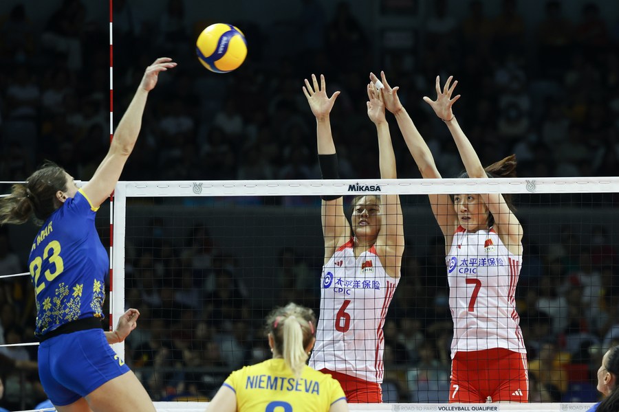 NINGBO, China, Sept. 17 (Xinhua) -- Host China defeated Ukraine 3-0 (25-21, 25-18, 25-21) in Group A of the Paris Olympic women's volleyball qualifiers, which began on Saturday.