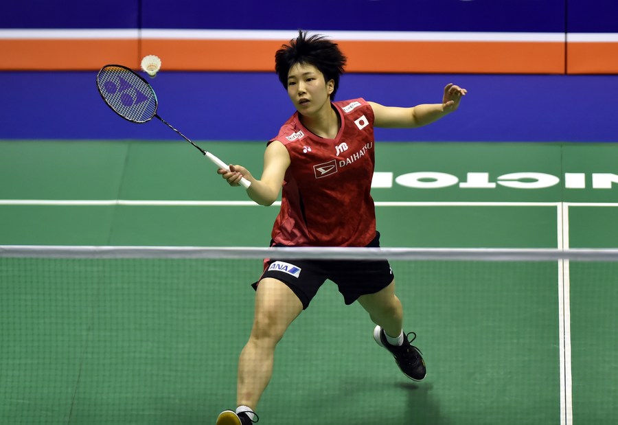 Akane Yamaguchi of Japan hits a return during the women's singles final against Zhang Yiman of China. (Xinhua/Lo Ping Fai)