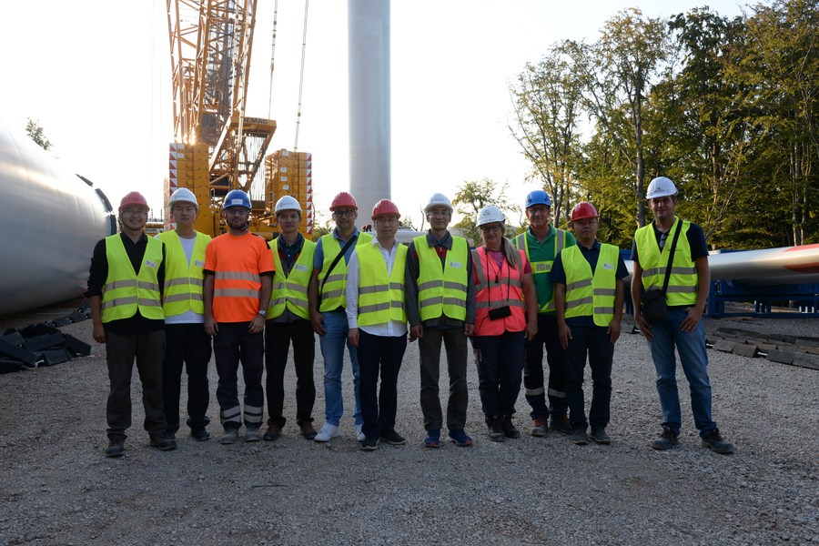 Chinese and Croatian engineers pose for a group photo at the construction site of the 156 Megawatt (MW) Senj Wind Farm project in Senj, Croatia, Sept. 16, 2020. (Xinhua/Gao Lei)