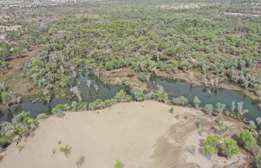 On the northern edge of the Taklimakan Desert lies the Aiximan Lake area, located in Awat County, Aksu Prefecture. Previously plagued by desertification, soil erosion and wetland degradation, this lake area in the western part of the Aksu River basin was once a major source of windblown sand in the basin's oasis. Today, it is a lush landscape, with expansive forests standing tall and lucid rivers meandering along the forest's perimeter.