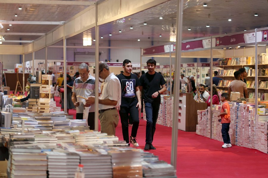 People visit the 24th edition of the Baghdad International Book Fair in Baghdad, Iraq, on Sept. 19, 2023. (Xinhua/Khalil Dawood)
