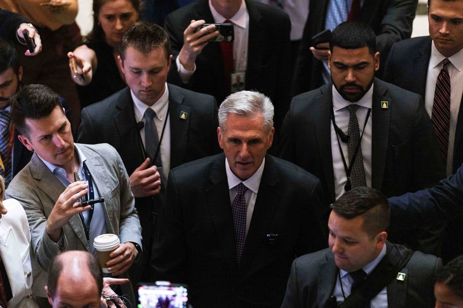 Two groups of House majority Republicans -- hardline House Freedom Caucus and moderate Main Street Caucus -- reached the tentative bill on Sunday, which intends to tighten border security, cut federal spendings excluding those on defense, veterans, or disaster relief by 8 percent, and stop increasing aid to Ukraine, in exchange for 1 percent of overall spending cut.