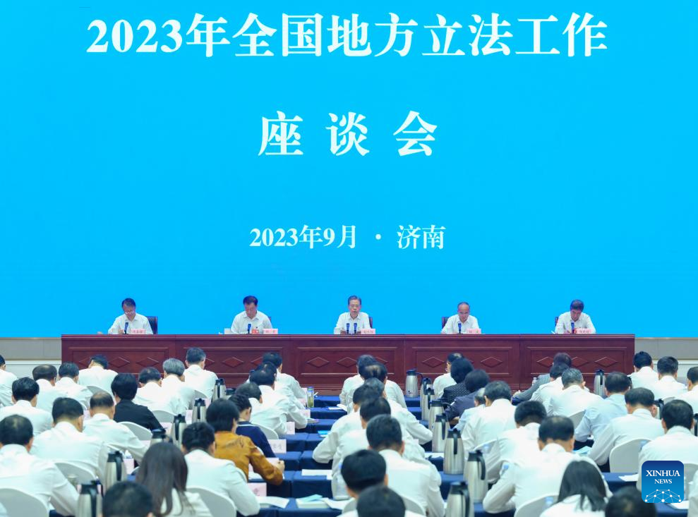 Zhao Leji, a member of the Standing Committee of the Political Bureau of the Communist Party of China Central Committee and chairman of the Standing Committee of the National People's Congress, attends a local legislation seminar in Jinan, east China's Shandong Province, Sept. 19, 2023. Zhao attended a local legislation seminar and carried out fact-finding research in east China's Shandong Province. (Xinhua/Ding Lin)
