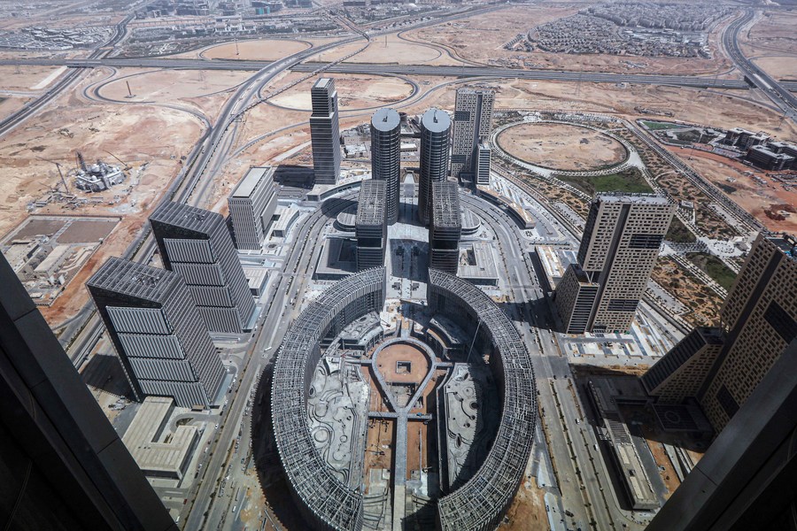 This photo taken on Sept. 11, 2023 shows the construction site of Central Business District (CBD) project constructed by China State Construction Engineering Corporation (CSCEC) in the new administrative capital, east of Cairo, Egypt. (Xinhua/Ahmed Gomaa)
