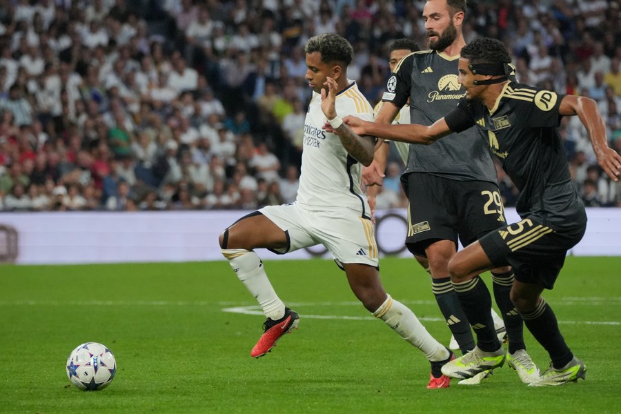 MADRID, Sept. 20 (Xinhua) -- Jude Bellingham scored in the last minute of injury-time as Real Madrid kicked off this season's UEFA Champions League campaign with a 1-0 win at home to Union Berlin.