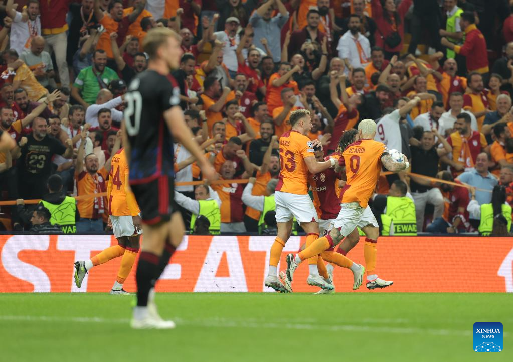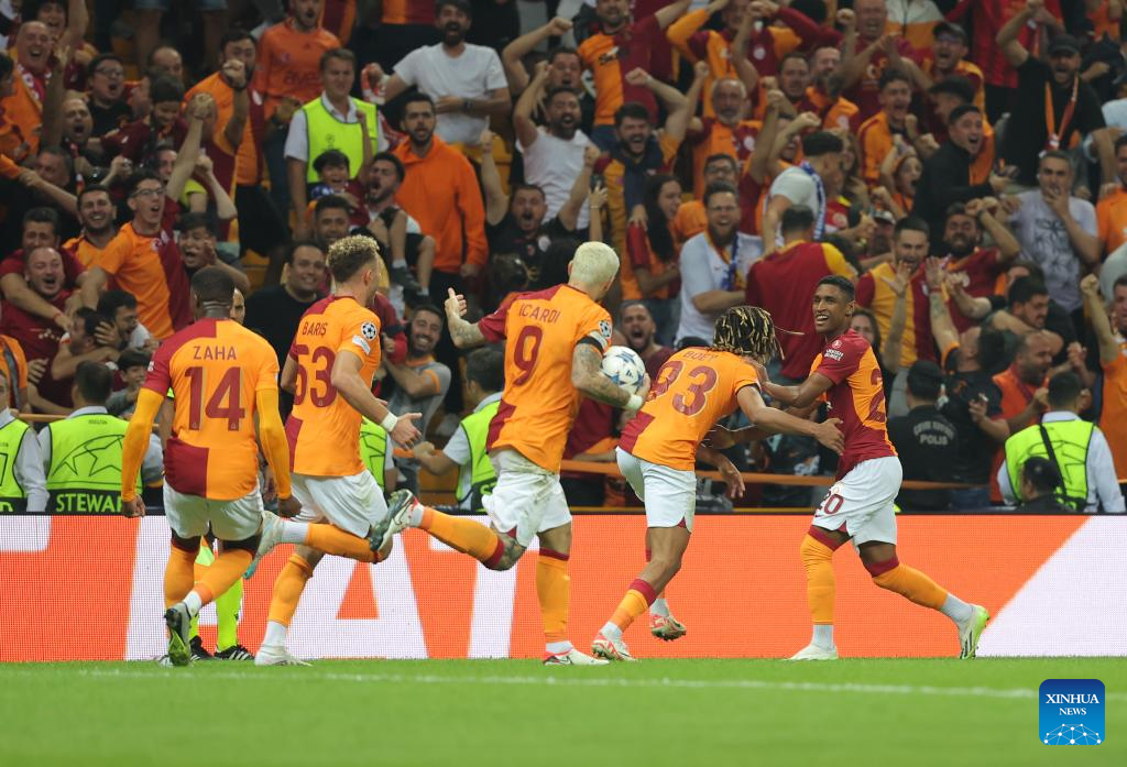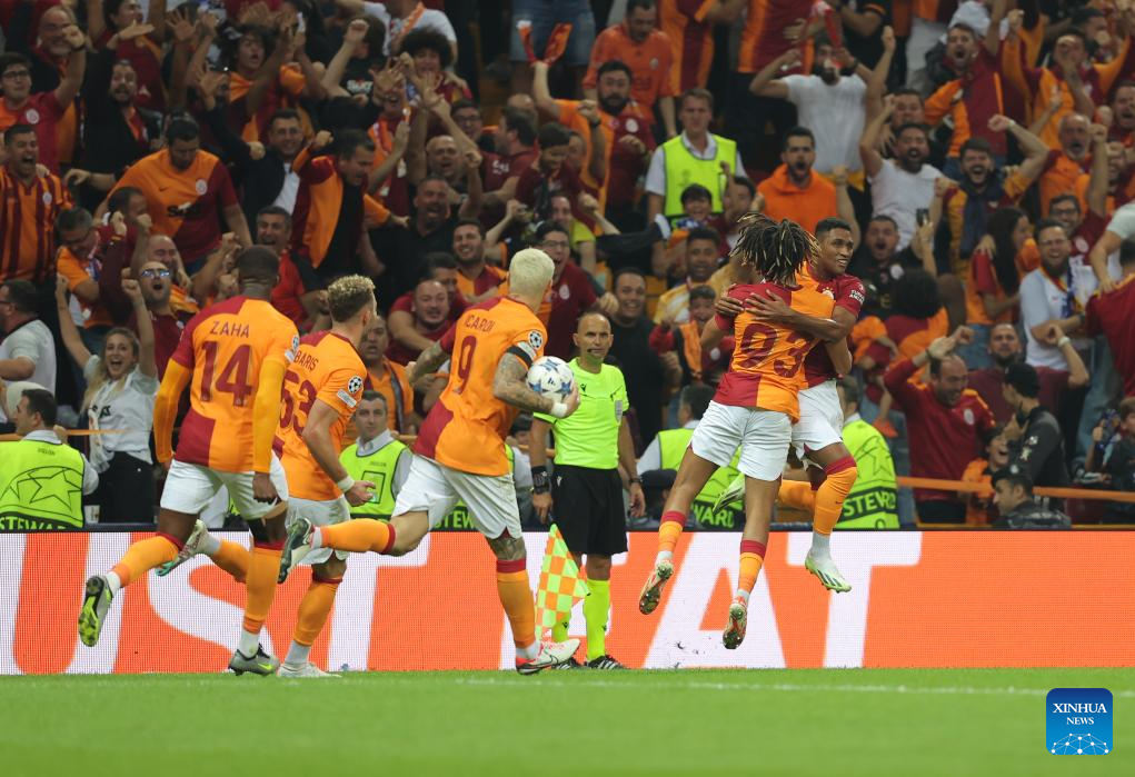 Tete (1st R) of Galatasaray celebrates his goal with his teammates during the UEFA Champions League Group A match between Galatasaray and Copenhagen in Istanbul, Türkiye, on Sept. 20, 2023. (Xinhua)