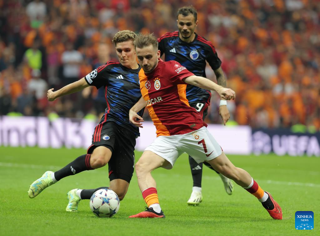 Sergio Oliveira (L) of Galatasaray vies with Lukas Lerager of Copenhagen during the UEFA Champions League Group A match between Galatasaray and Copenhagen in Istanbul, Türkiye, on Sept. 20, 2023. (Xinhua)