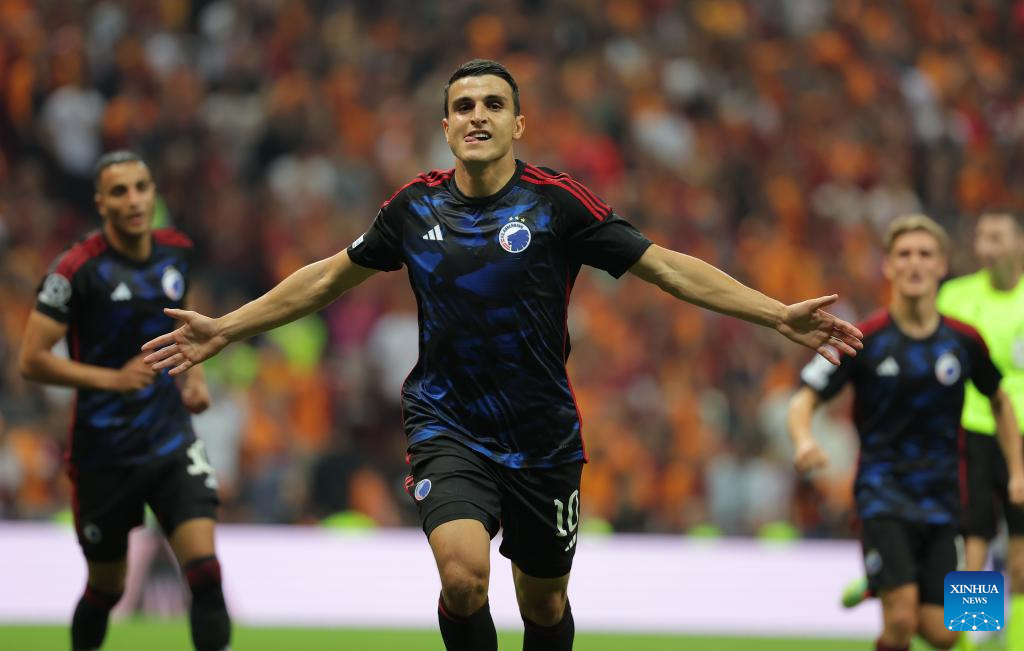 Mohamed Elyounoussi of Copenhagen celebrates his goal during the UEFA Champions League Group A match between Galatasaray and Copenhagen in Istanbul, Türkiye, on Sept. 20, 2023. (Xinhua)