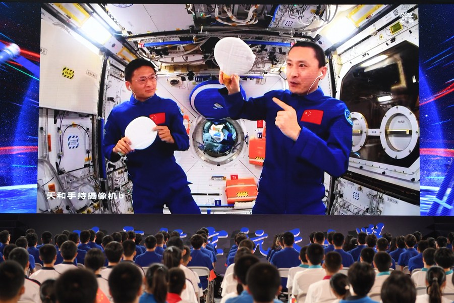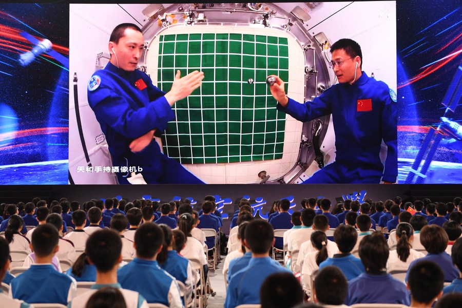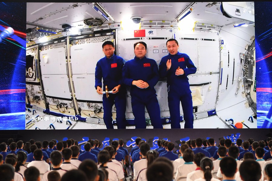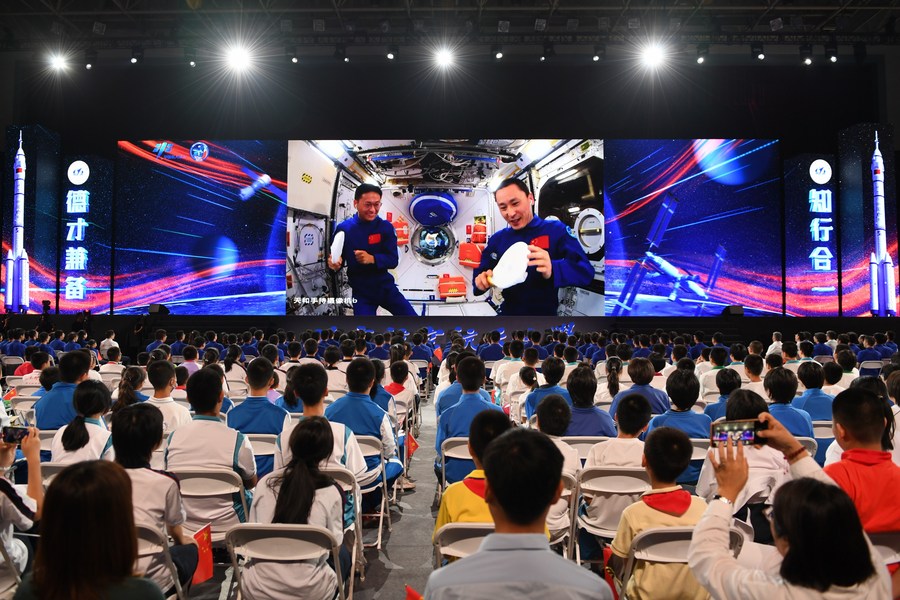 Beijing, Sept. 22 (Xinhua) -- The fourth live class from China's space station was held on Thursday afternoon, delivered by the Shenzhou-16 astronauts Jing Haipeng, Zhu Yangzhu and Gui Haichao to students on Earth. This was the first science lecture delivered from the Mengtian lab module of the Tiangong space station and the fourth in the "Tiangong Class" series.
