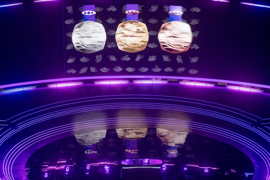 The medals of the 19th Asian Games were unveiled at a ceremony in Hangzhou, east China's Zhejiang Province, on June 15, 2023. (Xinhua/Jiang Han)