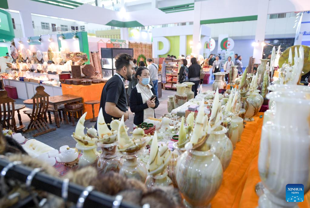 Visitors shop for commodities from Pakistan during the sixth China-Arab States Expo in Yinchuan, northwest China's Ningxia Hui Autonomous Region, Sept. 22, 2023. The sixth China-Arab States Expo opened Thursday in Yinchuan, capital of northwest China's Ningxia Hui Autonomous Region.