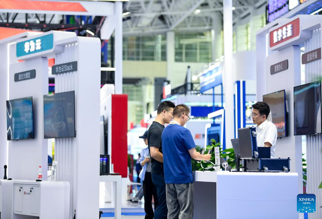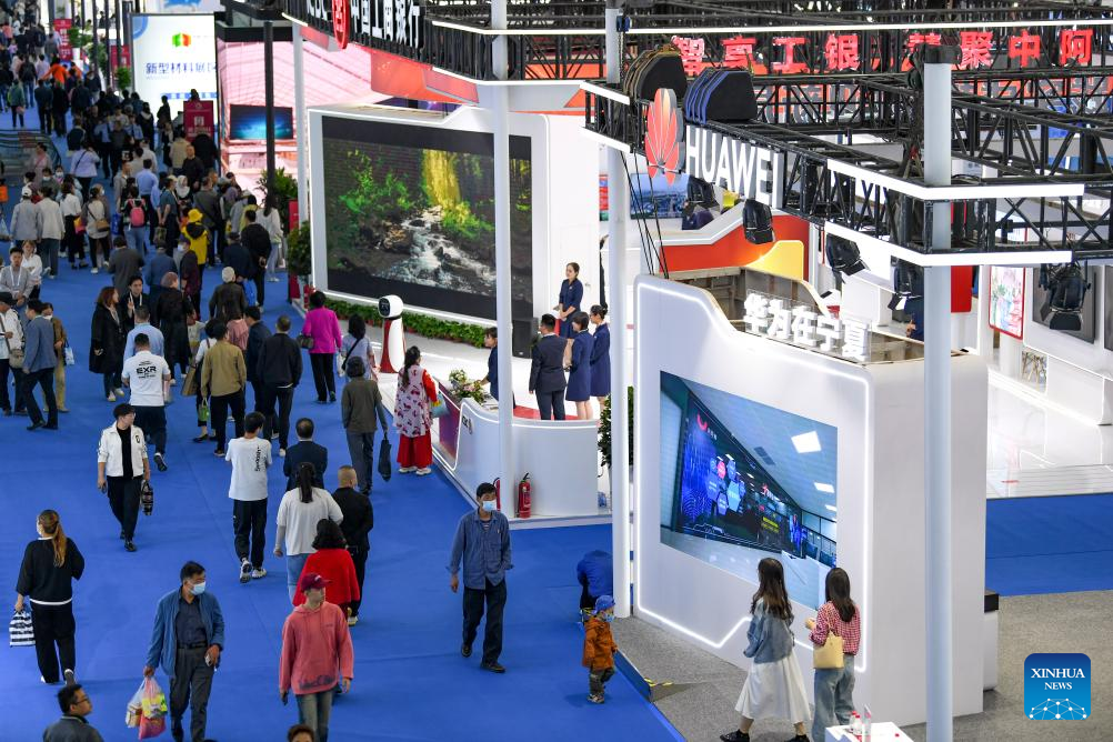 Guests are seen at the digital economy exhibition area of the sixth China-Arab States Expo in Yinchuan, northwest China's Ningxia Hui Autonomous Region, Sept. 22, 2023. The sixth China-Arab States Expo opened Thursday in Yinchuan, capital of northwest China's Ningxia Hui Autonomous Region.
