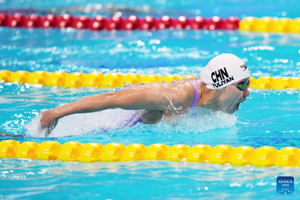 Yu Liyan of China competes during the Women's 200m Butterfly Final at the 19th Asian Games in Hangzhou, east China's Zhejiang Province, Sept. 24, 2023. (Xinhua/Du yu)
