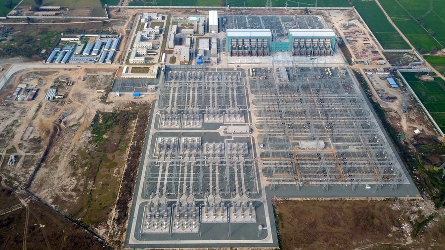 Photo taken on Feb. 4, 2021 shows the Lahore converter station of the ±660kV Matiari-Lahore high-voltage direct current (HVDC) transmission project under the China-Pakistan Economic Corridor (CPEC) in Pakistan's eastern Punjab Province. (SGCC/Handout via Xinhua)