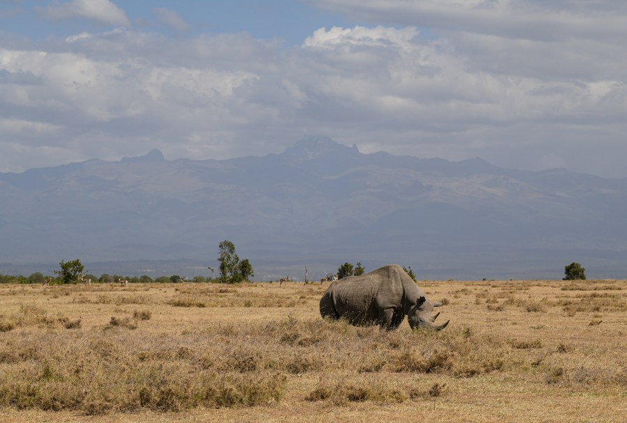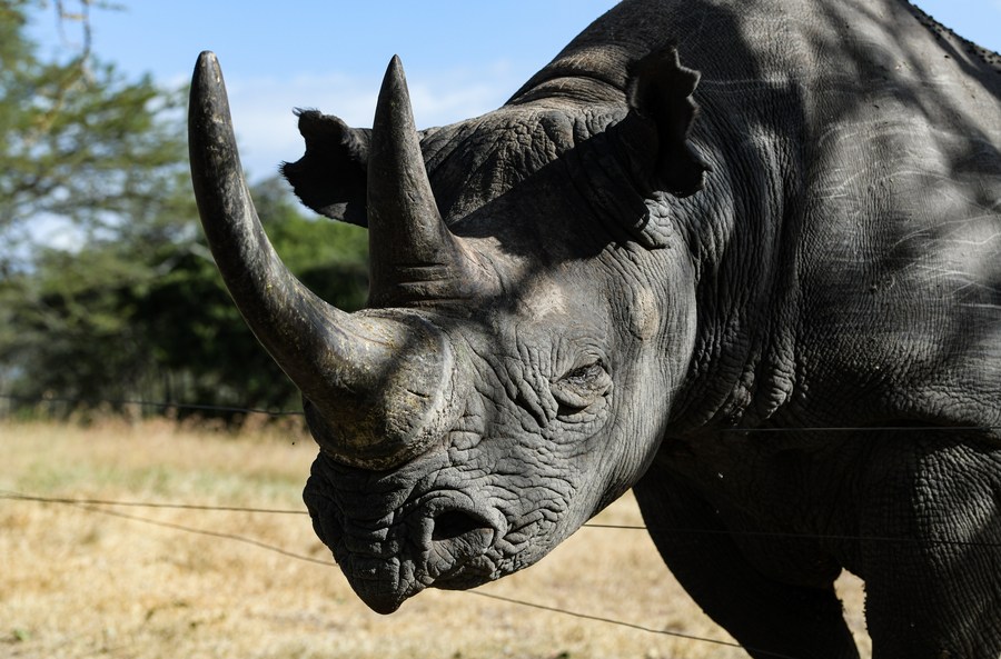 A black rhino is seen at Ol Pejeta Conservancy in Laikipia County, Kenya, Feb. 4, 2023. (Xinhua/Han Xu)