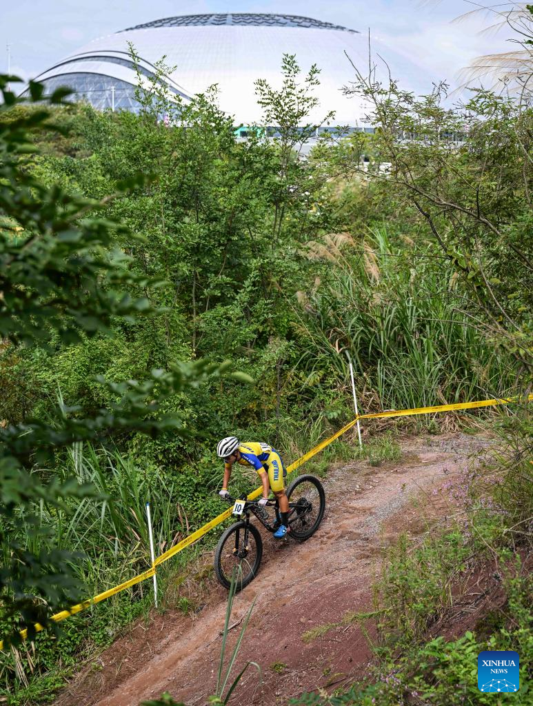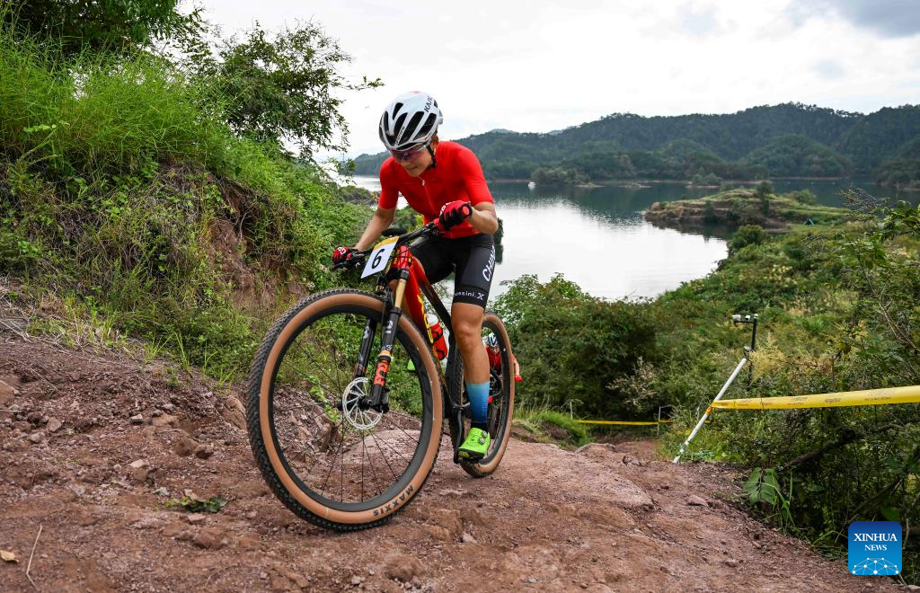 Supuksorn Nuntana of Thailand competes during the Women's Cross Country Olympic of Cycling Mountain Bike at the 19th Asian Games in Chun'an County of Hangzhou, east China's Zhejiang Province, Sept. 25, 2023. (Xinhua/Hu Huhu)