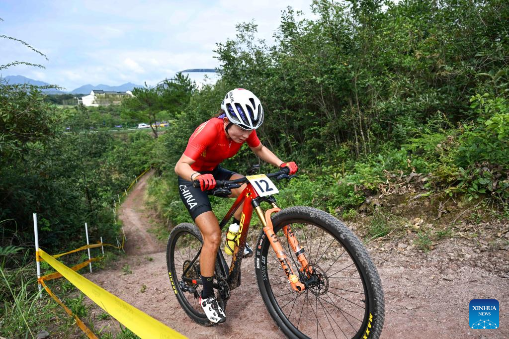 Ma Caixia of China competes during the Women's Cross Country Olympic of Cycling Mountain Bike at the 19th Asian Games in Chun'an County of Hangzhou, east China's Zhejiang Province, Sept. 25, 2023. (Xinhua/Hu Huhu)