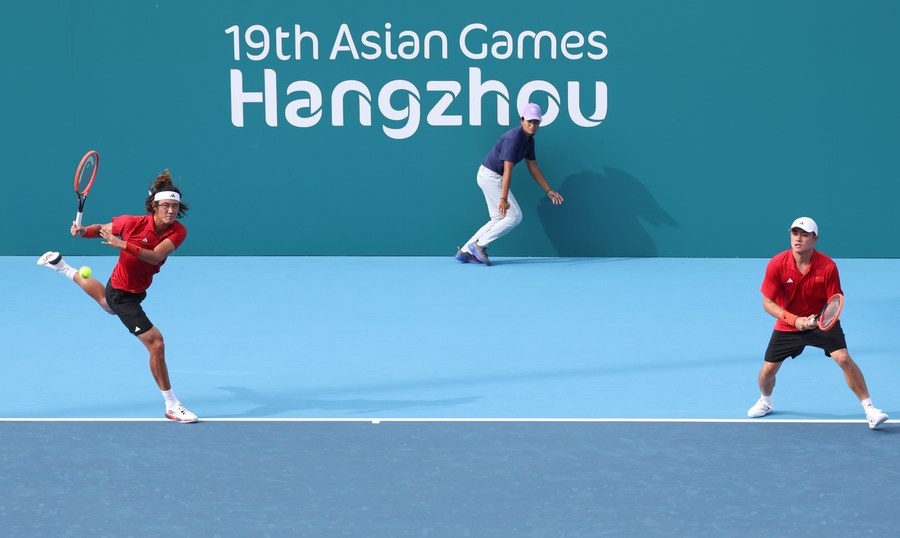 HANGZHOU, Sept. 24 (Xinhua) -- China's Wu Yibing and Zhang Zhizhen secured a 6-3, 6-0 win over Ho Chenjui and Wu Tung-lin of Chinese Taipei in the first round of the men's tennis doubles at the Hangzhou Asian Games on Sunday.