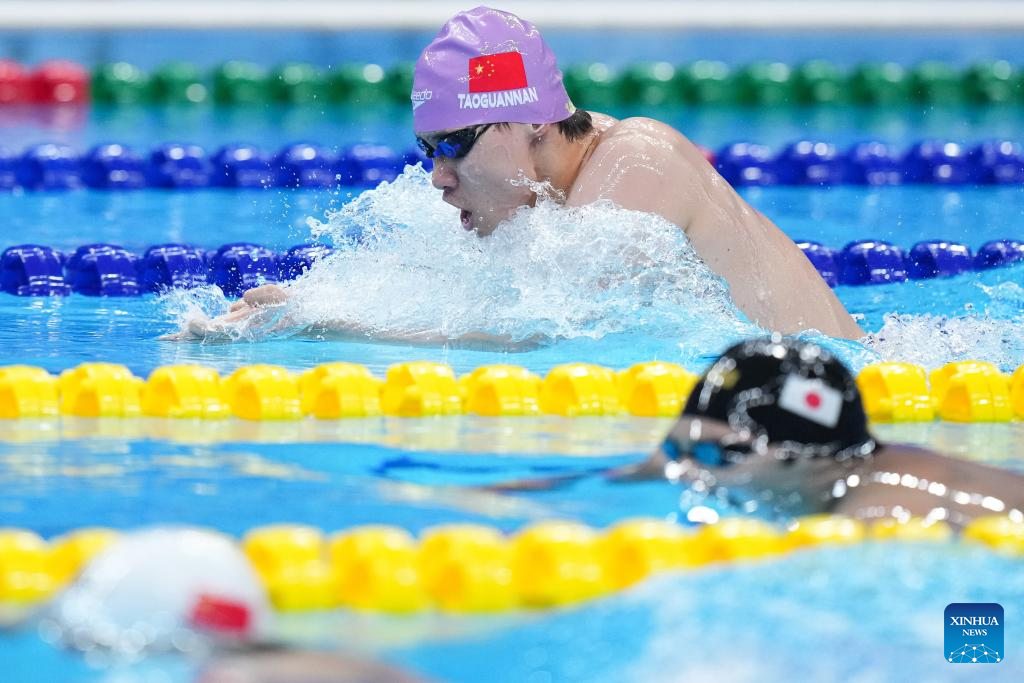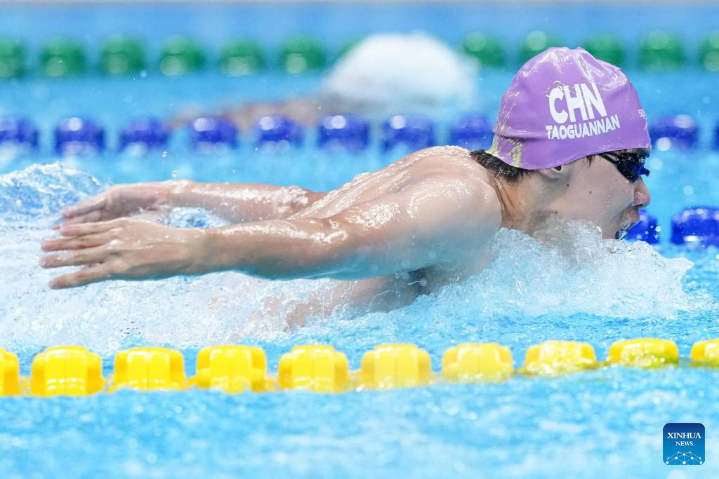Tao Guannan of China competes during the Men's 400m Individual Medley Heat of Swimming at the 19th Asian Games in Hangzhou, east China's Zhejiang Province, Sept. 26, 2023. (Xinhua/Du Yu)