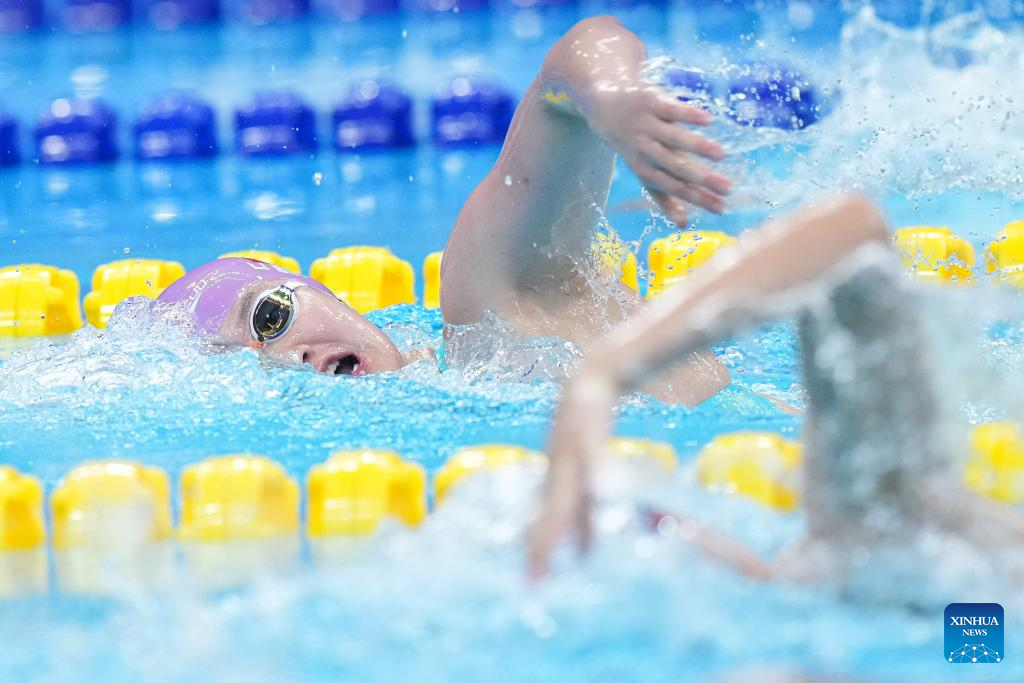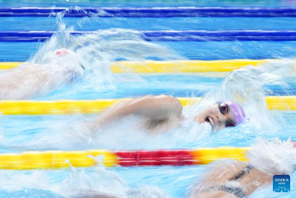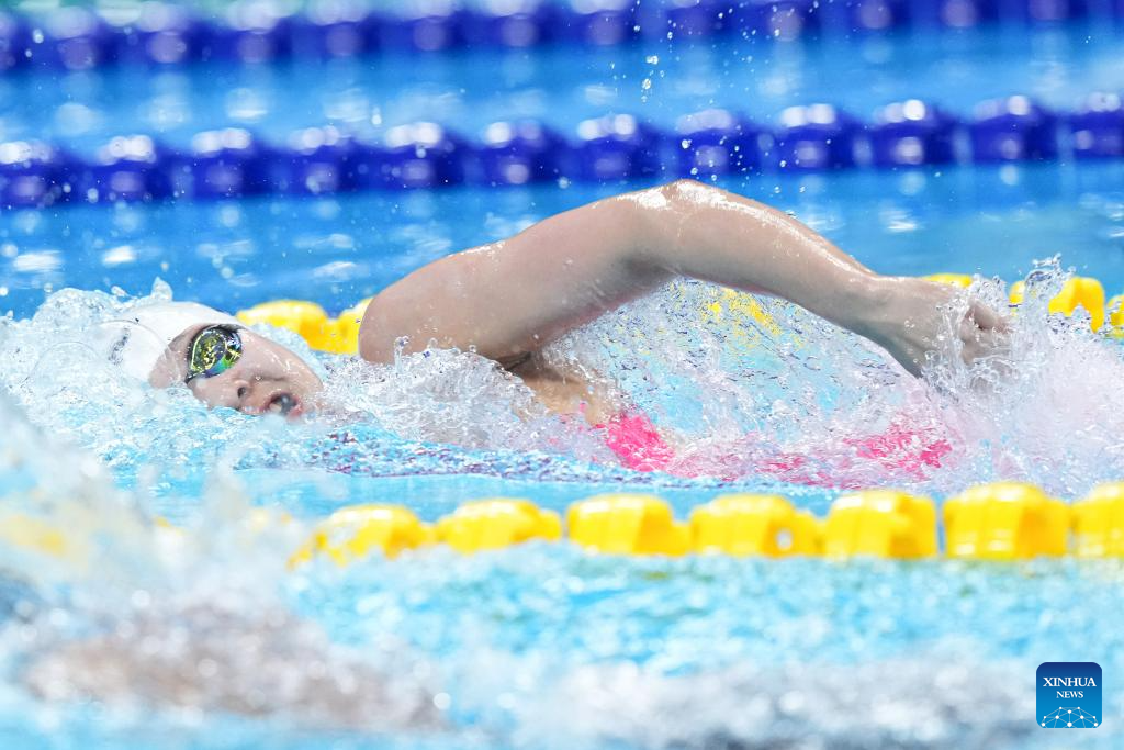 Li Bingjie of China competes during the Women's 400m Freestyle Heat of Swimming at the 19th Asian Games in Hangzhou, east China's Zhejiang Province, Sept. 26, 2023. (Xinhua/Du Yu)