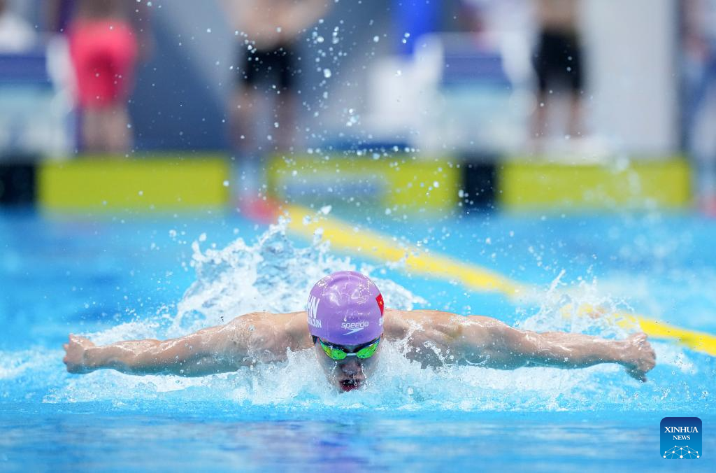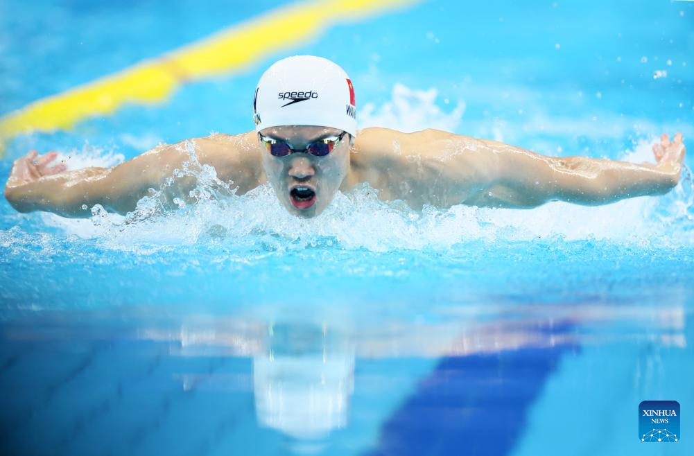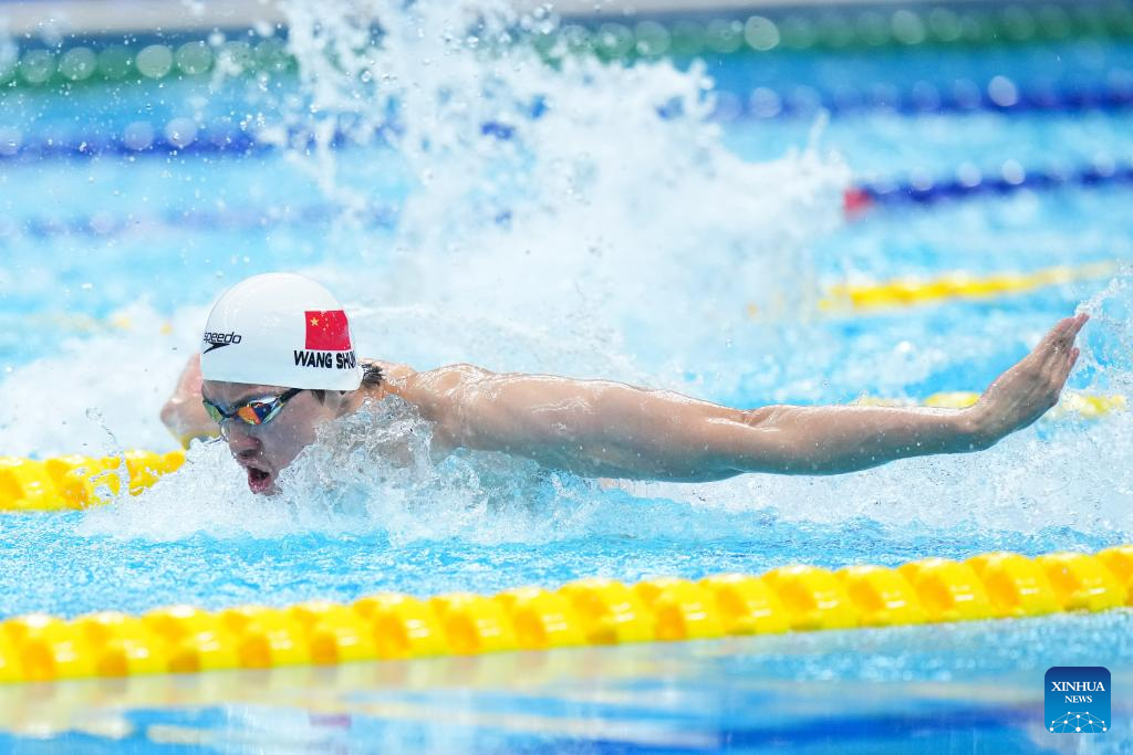 Wang Shun of China competes during the Men's 4x100m Medley Relay Heat of Swimming at the 19th Asian Games in Hangzhou, east China's Zhejiang Province, Sept. 26, 2023. (Xinhua/Du Yu)