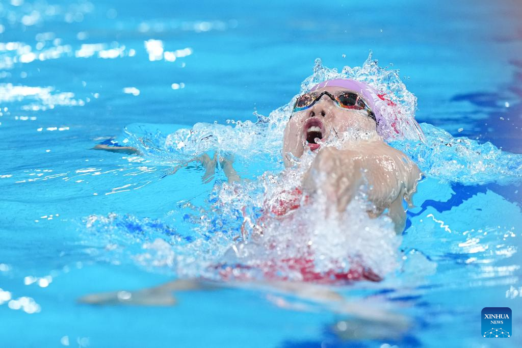 Peng Xuwei of China competes during the Women's 200m Backstroke Heat of Swimming at the 19th Asian Games in Hangzhou, east China's Zhejiang Province, Sept. 26, 2023. (Xinhua/Du Yu)
