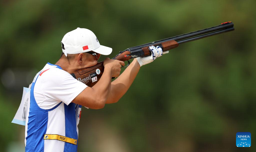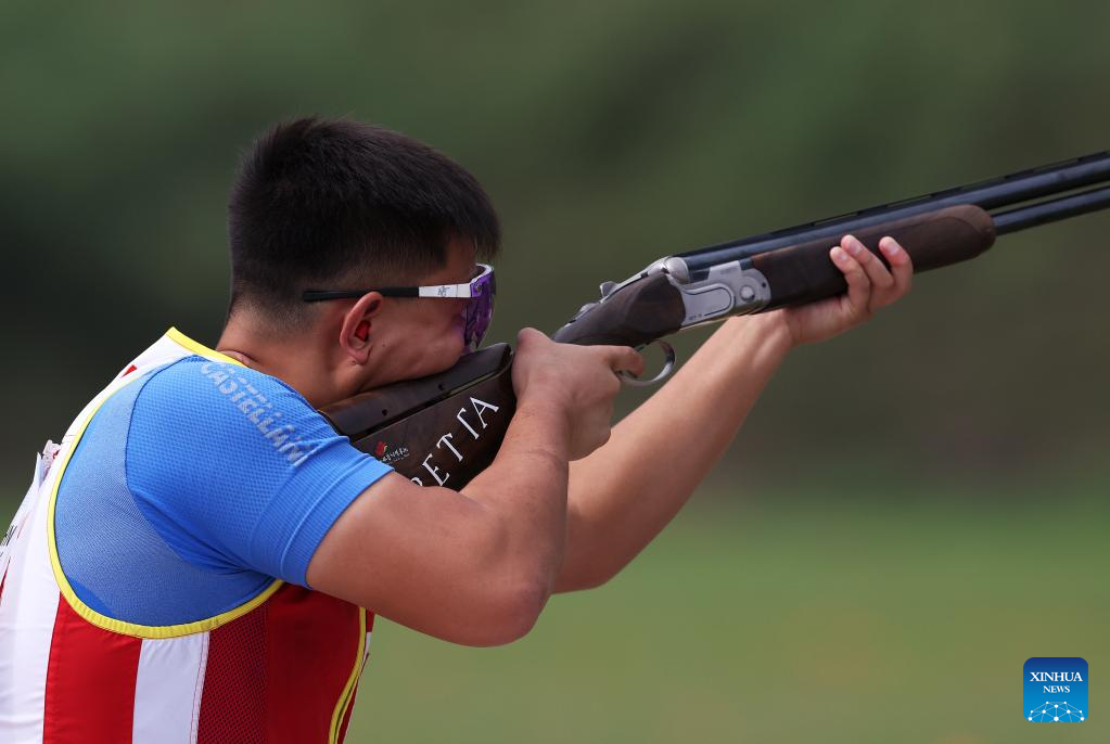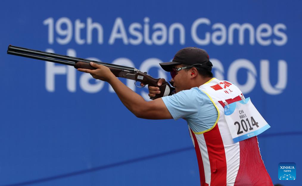 Han Xu of China competes during Men's Team Skeet-75 of Shooting at the 19th Asian Games in Hangzhou, east China's Zhejiang Province, Sept. 26, 2023. (Xinhua/Du Xiaoyi)