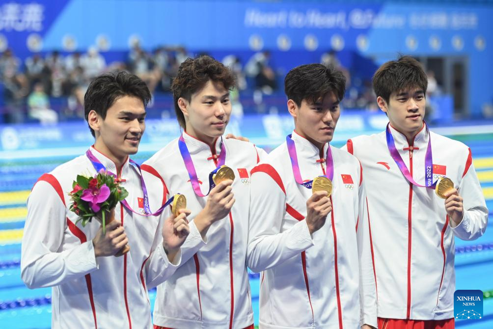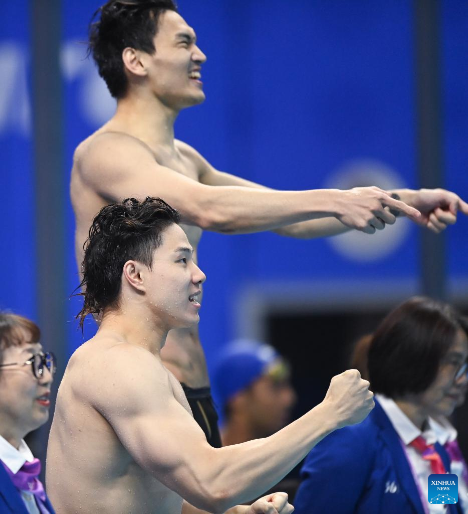 Boasting world champions Qin Haiyang and Xu Jiayu, China won the men's 4x100m medley relay with a new Asian record time of three minutes and 27.01 seconds. The result also ranked second in the all-time world rankings, 0.23 seconds behind the world record set by the United States.