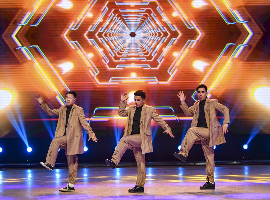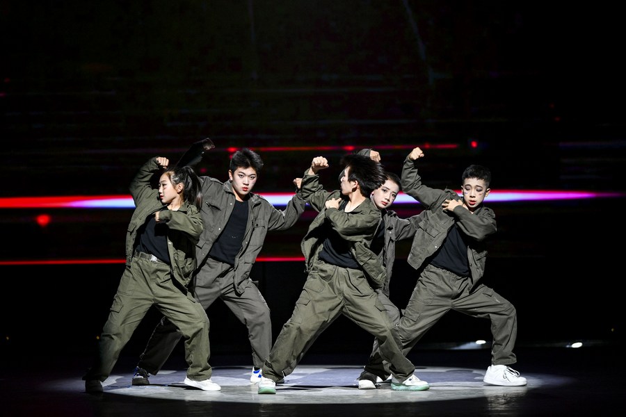 Dancers perform during a hip hop show, part of the 6th China Xinjiang International Dance Festival, in Urumqi, northwest China's Xinjiang Uygur Autonomous Region, July 21, 2023. (Xinhua/Hu Huhu)