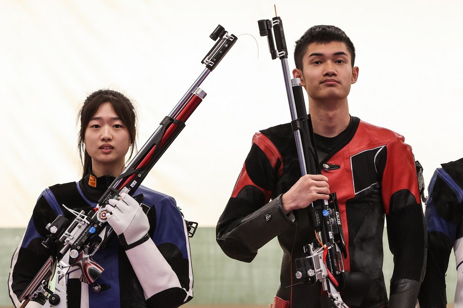 HANGZHOU, Sept. 26 (Xinhua) -- 17-year-old Chinese shooter Huang Yuting and her 18-year-old teammate Sheng Lihao clinched the gold medal of the 10m air rifle mixed team event at the Hangzhou Asian Games on Tuesday.