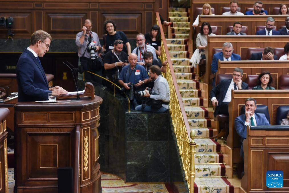 MADRID, Sept. 27 (Xinhua) -- The leader of Spain's right-wing People's Party (PP), Alberto Nunez Feijoo, was defeated on Wednesday in his first attempt to become the country's new prime minister.