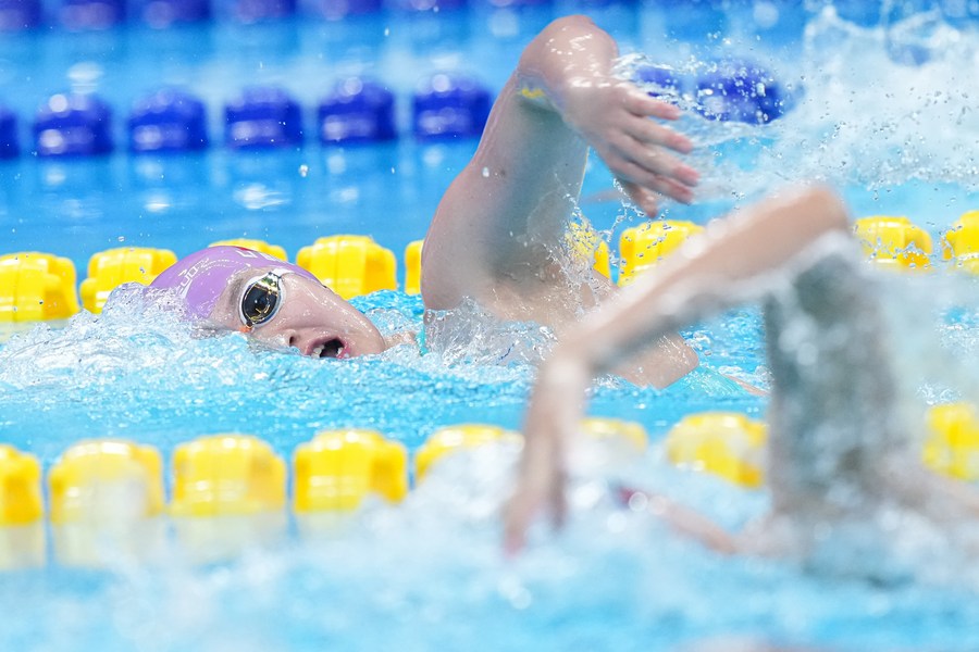 Li Bingjie of China competes during the women's 400m freestyle heat. (Xinhua/Du Yu)