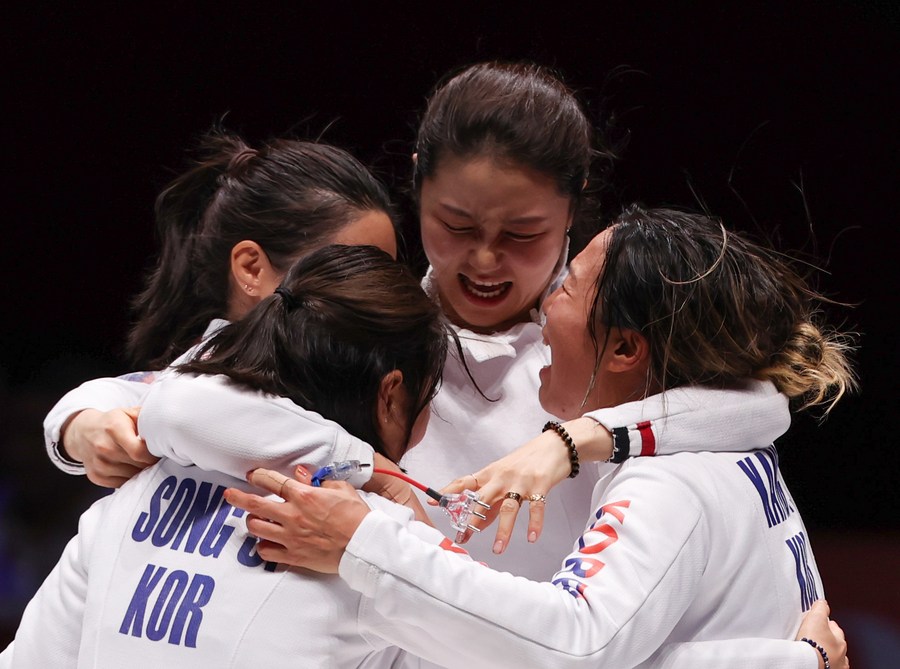 In the women's epee team event, world No. 1 South Korea overcame defending champions China in the semifinal, before beating Hong Kong, China 36-34 to win gold. ■
