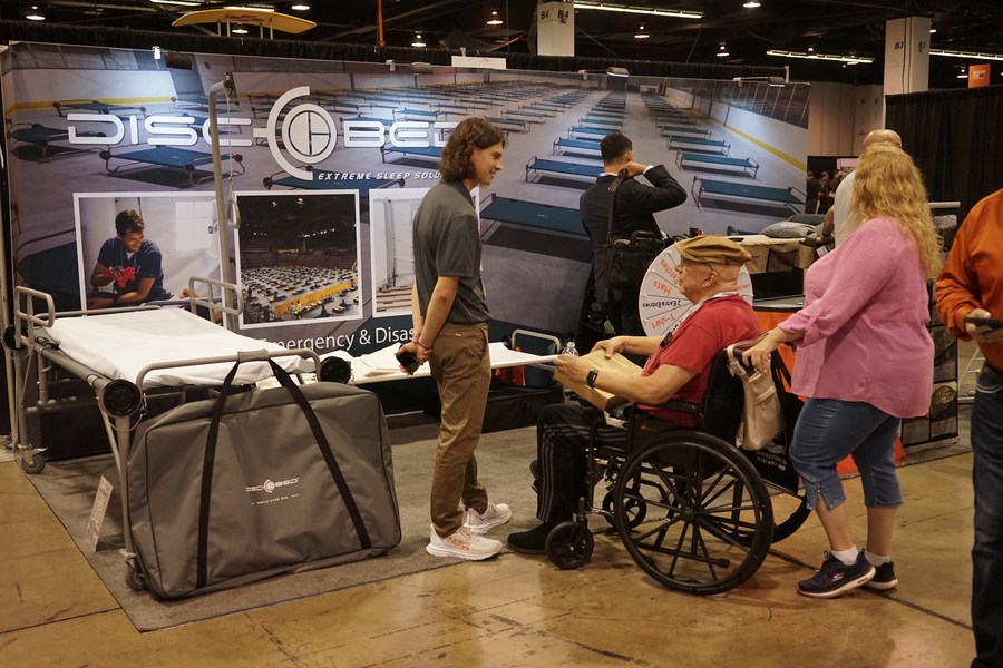 People visit Disasters Expo USA at the Anaheim Convention Center in Orange County, California, the United States, on Sept. 27, 2023. (Photo by Zeng Hui/Xinhua)