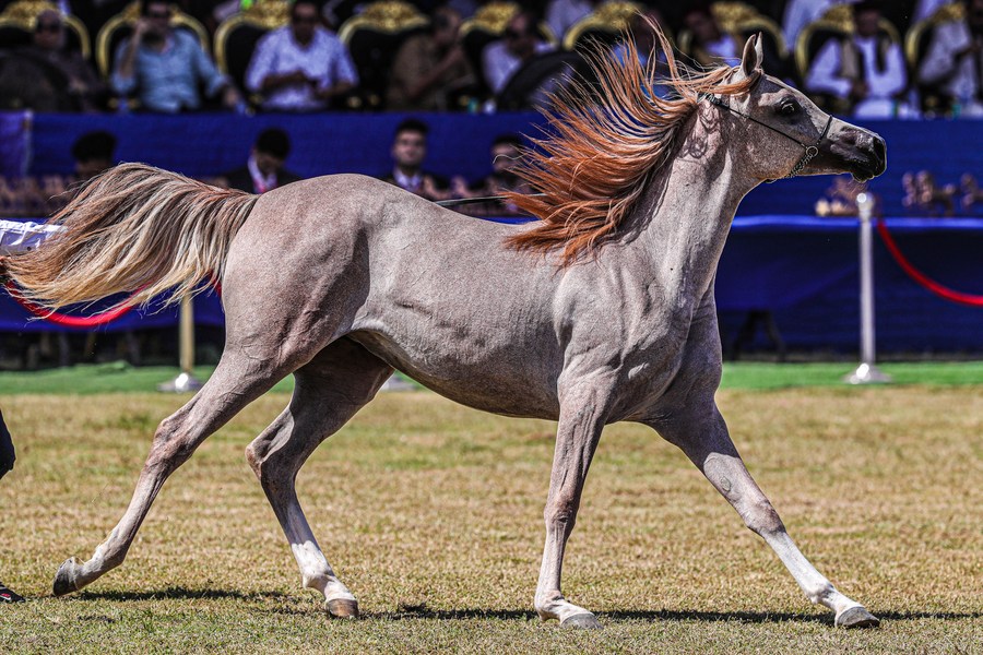 An Arabian horse is seen at a horse beauty contest during the Sharqia Arabian Horses Festival in Sharqia province, Egypt, Sept. 28, 2023. The three-day horse festival started on Wednesday here with the participation of 104 Arabian horses. (Xinhua/Ahmed Gomaa)