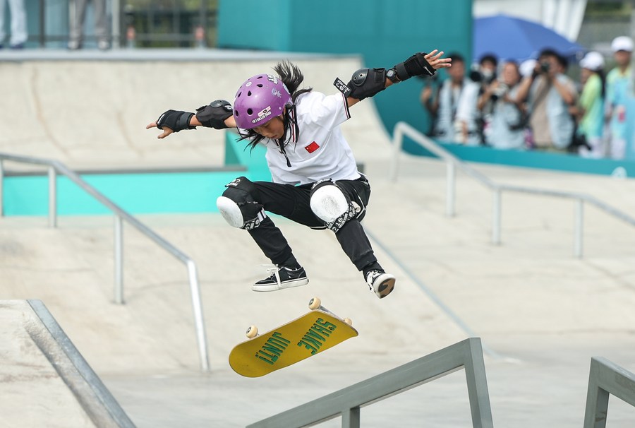 Cui Chenxi, a 13-year-old, became China's youngest-ever Asian Games champion in women's street skateboarding, while Zhang Jie and Su Jianjun won gold and bronze respectively in the men's street event.