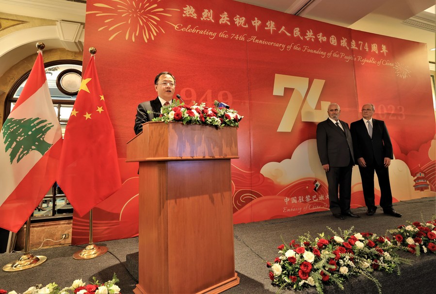 BEIRUT, Sept. 27 (Xinhua) -- The Chinese embassy in Lebanon celebrated on Tuesday the 74th anniversary of the founding of the People's Republic of China (PRC), which falls on Oct. 1.