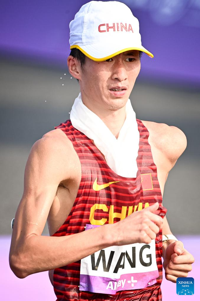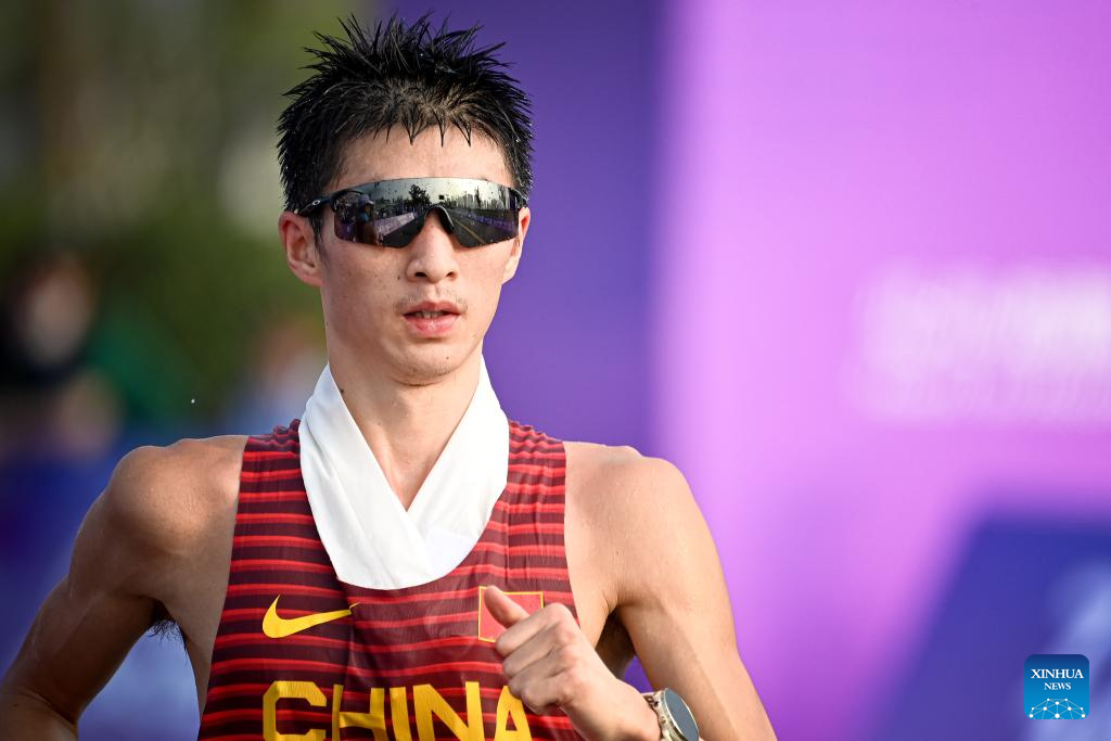 Wang Zhaozhao of China competes during the Men's 20km Race Walk of Athletics at the 19th Asian Games in Hangzhou, east China's Zhejiang Province, Sept. 29, 2023. (Xinhua/Jiang Han)