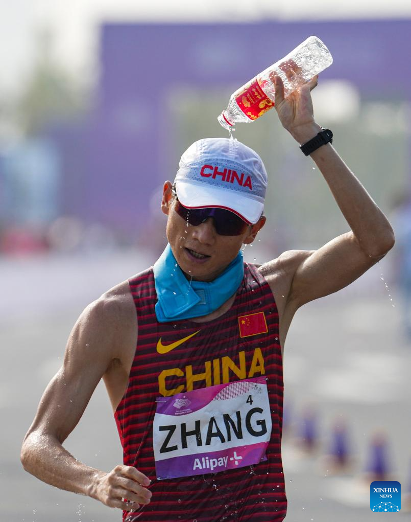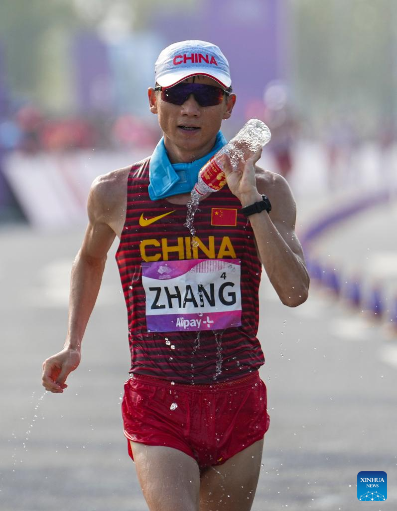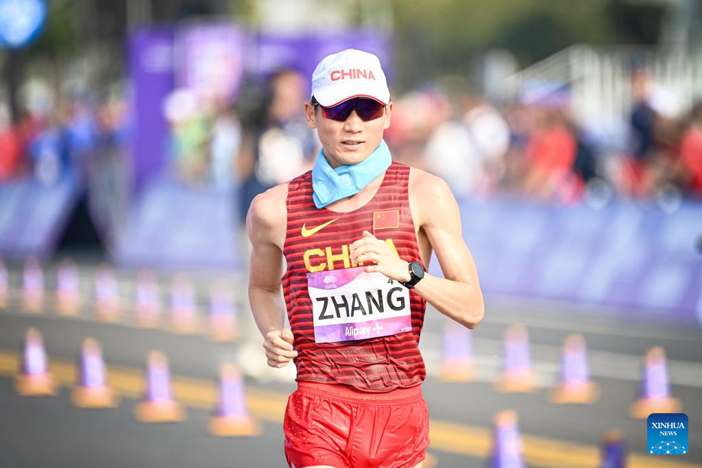 Zhang Jun of China competes during the Men's 20km Race Walk of Athletics at the 19th Asian Games in Hangzhou, east China's Zhejiang Province, Sept. 29, 2023. (Xinhua/Sun Fei)