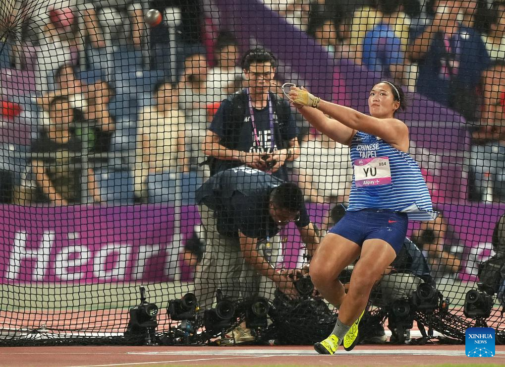 Yu Ya-Chien of Chinese Taipei competes during the Women's Hammer Throw Final of Athletics at the 19th Asian Games in Hangzhou, east China's Zhejiang Province, Sept. 29, 2023. (Xinhua/Li Yibo)