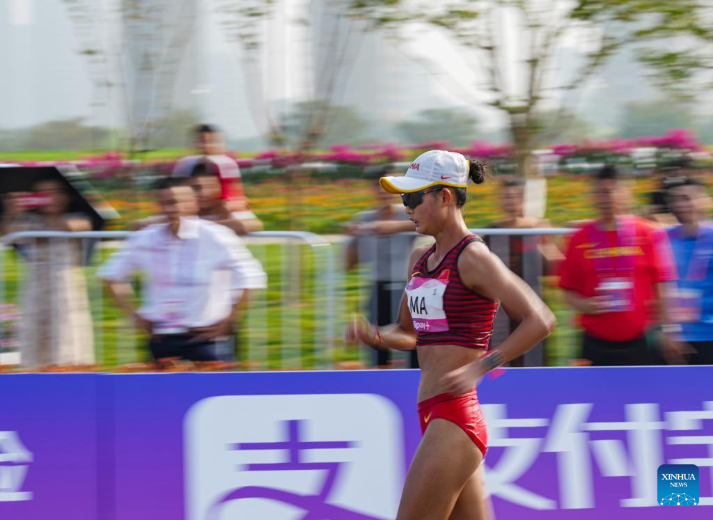 Ma Zhenxia of China competes during the Women's 20km Race Walk of Athletics at the 19th Asian Games in Hangzhou, east China's Zhejiang Province, Sept. 29, 2023. (Xinhua/Sun Fei)