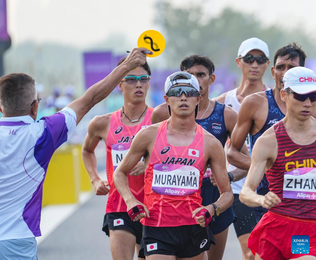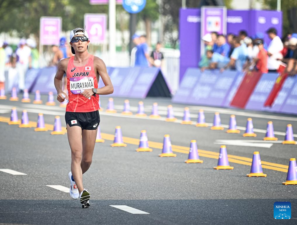 Murayama Yutaro of Japan competes during the Men's 20km Race Walk of Athletics at the 19th Asian Games in Hangzhou, east China's Zhejiang Province, Sept. 29, 2023. (Xinhua/Jiang Han)